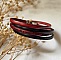 Standaard is de armband aangepast voor een pols van 19 cm (zeer breed): voor een kleinere pols kun je de armband dus gemakkelijk aanpassen. Of geef me de maat van je pols door, zodat ik hem voor je kan aanpassen. Voor een pols groter dan 19 cm, gelieve de maat te vermelden in de parameters. ENGRAVERING U kunt kiezen om de tekst van uw keuze te laten graveren op de armband, binnenin voor een vertrouwelijke boodschap of op beide zijden. Geef hieronder uw tekst(en) aan en het letternummer dat u verkiest (anders standaard n°7). U kunt voornamen, een datum, GPS-coördinaten, een citaat, de tekst van een liedje, een inspirerende boodschap, een liefdesverklaring... en symbolen zoals een hart, het oneindigheidsteken.Hoe donkerder de kleur van het leer, hoe discreter de gravure. Kies ook de geschenkverpakking, voor een kant en klare armband. Stapelbare armbanden of te associëren met een armband van hetzelfde leer in driedubbele draai, of een armband met een breder leer, 10mm, in enkele of dubbele draai, te vinden in de winkel.