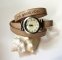 Dameshorloge met 3 polsen in Europees leder, met bronzen wijzerplaat, personaliseerbaar met een gegraveerde boodschap.