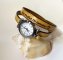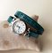 Europees lederen dubbel polshorloge voor dames, met een zilveren wijzerplaat en een bijpassende ronde parel als versiering.